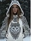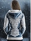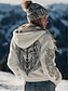 Damen-Kapuzenpullover mit Wikingermotiv, Tiergrafik, Vintage-Stil, Boho-Look, lange Ärmel, Kapuze, normale Passform, lässiges Streetwear-Design, Fronttasche, weiß, Frühling, Herbst, Winter