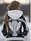 Damen Kapuzenpullover Grafik Tiermotiv Geometrisch Vintage Lässig Boho Langarm Mit Kapuze Normale Oberteile Lässig Straße Alltagskleidung Patchwork Druck Fronttasche Schwarz Weiß Grau Frühling Herbst