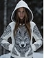 Damen-Kapuzenpullover im Wikinger-Stil mit Tiermotiven, Tribal-Print, Vintage-Look, Boho-Stil, langen Ärmeln, Kapuze, normaler Schnitt, lässiges Streetwear-Design, Fronttasche, weiß, Frühling, Herbst,