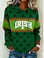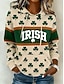 St. Patrick Damen Pullover Hoodie Sweatshirt Grafisches Kleeblatt Vintage Lässig Boho Langarm Kapuze Reguläre Oberteile Lässige Straße Alltagstragen Druck Vorderseite Tasche Schwarz Weiß Grün Beige