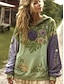 Damen 3D-Druck Vintage Boho Hoodie Patchwork Hoodie Sweatshirt Floral Viking Pullover Sweatshirt Floral Grafik Vintage Lässig Langarm Kapuzenpullover Street Druck Fronttasche Grün Frühling Herbst