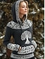 Damen-Kapuzenpullover im Wikinger-Stil mit Tiermotiven, geometrischem Vintage-Look, langen Ärmeln und Kapuze, Patchwork-Print, Vordertasche, schwarz, für Frühling, Herbst und Winter