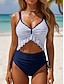Damen Einteiler Badeanzug Slimming Farbblock Bauchkontrolle Badeanzüge Geometrischer Vertikaler Streifen Druck Rundhalsausschnitt Ärmellos Sportlich s Schwarz Weiß Sommer Strand Poolmode