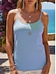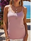 Damen T Shirt Tank Top T-Shirt Einfarbig Klassisch Lässig Strand Ärmellos Rundhalsausschnitt Normale Oberteile Täglich Ausgehen Strandbekleidung Blau Schwarz Weiß Rosa Khaki Sommer Frühling
