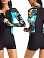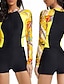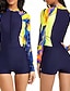 Damen Badeanzug Tankini Zweiteilig Shorts Bademode Reißverschluss Bauchkontrolle Hohe Taille Schlank Urlaub Strandbekleidung Blumen Rundhals Ärmellos Langarm Badeanzüge