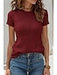 Damen T Shirt Textur T-Shirt Jacquard Rüsche Einfarbig Elegant Mode Stilvoll Kurzarm Rundhalsausschnitt Normale Oberteile Täglich Ausgehen Wochenende Schwarz Weiß Wein Grün Sommer Frühling