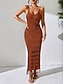 Damen Maxikleid Strickkleid Romantisch Klassisch Täglich Strand Urlaub Schlank Geometrisch Ärmellos Rundhalsausschnitt V Ausschnitt Braun Schwarz Weiß Khaki Sommer