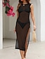 Damen Knielanges Kleid Strickkleid Elegant Täglich Strand Sommerkleid Lässiger Schnitt Geometrisch Ärmellos Neckholder Blau Schwarz Weiß Hellgrün Sommer