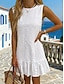 Damen Minikleid Weißes Kleid Freizeitkleid Sommerkleid Kleid mit Lochstickerei Mode Modern Strand Urlaub Ferien Normale Passform Blumen Ärmellos Rundhalsausschnitt Weiß Sommer Frühling