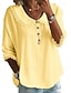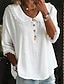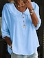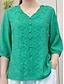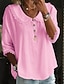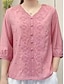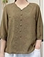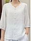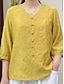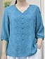 Damen Leinenähnliches Faux Baumwoll Leinen Bluse Spitze Bestickte Knöpfe Unifarben Täglich Stylisch Lässig 3/4 Länge Ärmel V-Ausschnitt Regulär Oberteile Täglich Blau Weiß Gelb Pink Marineblau Sommer