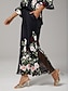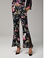 Damenhose Stretchstoff Blumendruck Chiffon transparente Einsätze ausgestelltes Bein elastische Taille elegant bequem Alltag Arbeit Herbst