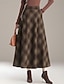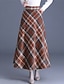 Damen Elegant Retro Vintage Maxi Hohe Taille Röcke Karomuster Farbblock Tasche Lang Mikroelastisch Täglich Alltagstauglich Rote Khaki Herbst 100% Polyester