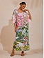 Hawaii Palmen-Maxikleid aus fließendem Chiffon mit Blumenmuster