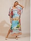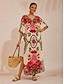 Damen Schwingkleid Druckkleid Lockeres Kleid Maxikleid Orange Halbärmel Linien / Wellen Drucken Lang Frühling & Sommer V Ausschnitt Alltagstauglich Strand S M L
