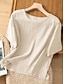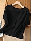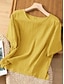 Frauen Baumwolle Leinen T-Shirt Einfarbig Mode Modern Lässig Kurzarm Rundhals Regelmäßige Oberteile Täglich Wochenende Schwarz Weiß Gelb Braun Beige Sommer Frühling