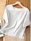 Damen Übergröße Baumwoll-Leinen-Hemden T Shirt Tasche Einfach Täglich Lässig Kurzarm Rundhalsausschnitt Normale Oberteile Täglich Weiß Frühling Ganzjahres