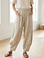 Damen Hose aus Baumwollleinen Weite Hosenbeine Weites Bein Chinos Urlaub Streetwear Basic Knöchellang Mittlere Taillenlinie Einfarbig Einfach Tasche Elastischer Bund Bequem Atmungsaktiv Mikroelastisch