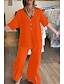 Damen Baumwoll-Leinen-Sets Hosen-Sets Kurzarm Hemdkragen Einfarbig Elegant Mode Streetwear Lässig Täglich Outdoor Blau Schwarz Weiß Sommer Normale Passform
