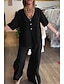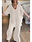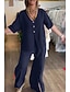 Damen Baumwoll-Leinen-Sets Hosen-Sets Kurzarm V Ausschnitt Einfarbig Elegant Mode Streetwear Lässig Täglich Outdoor Blau Schwarz Weiß Sommer Lässiger Schnitt
