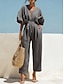 Damen Normal Overall Aktiv Einfarbig Dreiviertelarm Weites Bein V Ausschnitt Schnürung Tasche Täglich Urlaub Lässiger Schnitt Blau Schwarz Weiß Sommer
