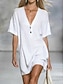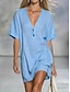 Damen Hemd Baumwoll Mischung Leinenhemd Boho-Hemd Einfarbig Einfach Vintage Stilvoll Kurzarm V Ausschnitt Lange Oberteile Täglich Outdoor Streetwear Blau Sommer Frühling