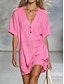 Damen Minikleid Shiftkleid Sommerkleid Lässig Täglich Lässiger Schnitt Einfach Kurzarm V Ausschnitt Blau Weiß Gelb Rosa Sommer Frühling Herbst