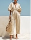 Damen Baumwoll-Leinen-Sets Hosen-Sets Bolero-Oberteil Langarm Hemdkragen Einfarbig Mode Streetwear Lässig Täglich Outdoor Weiß Khaki Dunkelgray Sommer Normale Passform