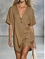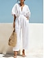Frauen Baumwolle Leinen Maxi Kleid Shift Kleid Lässig Täglich Strand Lockerer Sitz Einfarbig Kurzarm V-Ausschnitt Schwarz Beige Sommer Frühling