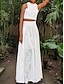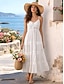 Damen Maxikleid A Linie Kleid Unterkleid Urlaub Lässig Outdoor Ausgehen Lässiger Schnitt Einfarbig Ärmellos V Ausschnitt Weiß Sommer Frühling