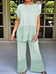 Damen Baumwoll-Leinen-Sets Bluse Shorts-Sets Kurzarm V Ausschnitt Einfarbig Loch Aktiv Täglich Ferien Blau Schwarz Gelb Sommer Normale Passform