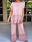 Damen Hosen-Sets Dreiviertelarm V Ausschnitt Einfach Patchwork Loch Elegant Mode Streetwear Lässig Täglich Outdoor Dunkelpink Blau Khaki Sommer Normale Passform