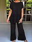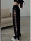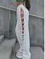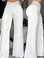 Damen Weites Bein Chinos Elegant Vintage Mode Volle Länge Mittlere Taillenlinie Einfarbig Patchwork Elastischer Bund Loch Bequem Atmungsaktiv Unelastisch Täglich Outdoor Urlaub Schwarz Weiß Sommer