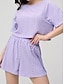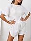 Damen Schlafanzug Set Lässig Komfort Einfarbig Elastischer Bund Loch Shorts Täglich Heim Kurzarm Rundhalsausschnitt Blau Schwarz Weiß Rosa Purpur Sommer Frühling Lässiger Schnitt