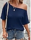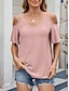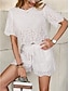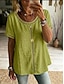 Damen Textur Bluse Oberteil mit Ösen Pointelle Tee Schulterfreies Oberteil Loch Einfarbig Mode Stilvoll Klassisch Kurzarm Rundhalsausschnitt V Ausschnitt Normale Oberteile Lässig Täglich Strand