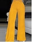 Damen Weites Bein Chinos Gerade Elegant Urlaub Streetwear Volle Länge Hohe Taille Einfarbig Patchwork Tasche Elastischer Bund Bequem Atmungsaktiv Unelastisch Täglich Heim Outdoor Mandelfarben Sommer