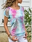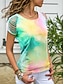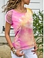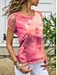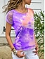 Damen T Shirt T-Shirt Druck Loch Batik Mode Stilvoll Klassisch Kurzarm Rundhalsausschnitt Normale Oberteile Täglich Ausgehen Wochenende Blau Rosa Wein Himmelblau Purpur Sommer Frühling