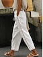 Damen Kunstbaumwollleinen Basic Volle Länge Hohe Taille Einfach Tasche Elastischer Bund Loch Bequem Außenbereich Straße Alltagskleidung Ausgehen Weiß Blau Khaki Grau Sommer Normale Passform