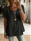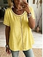 Damen T Shirt Hemd aus Leinenimitat T-Shirt Loch Einfach Mode Stilvoll Klassisch Kurzarm Rundhalsausschnitt Normale Oberteile Täglich Ausgehen Wochenende Blau Schwarz Weiß Gelb Rosa Sommer Frühling