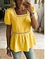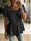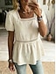 Damen T Shirt Kunstbaumwollleinen T-Shirt Loch Einfarbig Mode Klassisch Lässig Kurzarm Quadrathals Normale Oberteile Täglich Ausgehen Wochenende Schwarz Weiß Gelb Rosa Sommer Frühling