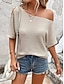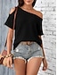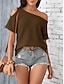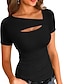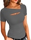 Damen T Shirt T-Shirt Loch Grafik Einfach Mode Stilvoll Klassisch Kurzarm Asymmetrisch U-Boot-Ausschnitt Normale Oberteile Täglich Ausgehen Wochenende Schwarz Weiß Marineblau Braun Aprikose Sommer