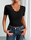 Damen T Shirt Knöpfe Loch Einfach Vintage Mode Stilvoll Kurzarm V Ausschnitt Normale Oberteile Täglich Ausgehen Wochenende Schwarz Sommer Frühling