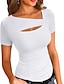 Damen T Shirt T-Shirt Loch Einfach Mode Stilvoll Klassisch Kurzarm Rundhalsausschnitt Normale Oberteile Lässig Täglich Ausgehen Weiß Sommer Frühling