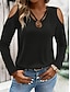 Damen Hemd Spitzenbluse Bluse Oberteil mit Ösen Patchwork Loch Einfarbig Elegant Mode Täglich Hemdkragen Büro Straße Ausgehen Schwarz Weiß Frühling & Herbst Herbst Winter