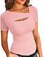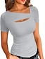 Damen T Shirt T-Shirt Loch Einfach Klassisch Lässig Kurzarm Rundhalsausschnitt Normale Oberteile Täglich Ausgehen Wochenende Schwarz Weiß Rosa Wein Dunkelgray Sommer Frühling