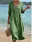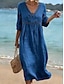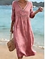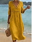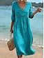 Damen Midikleid A Linie Kleid Lässig Outdoor Strand Ausgehen Lässiger Schnitt Einfarbig Dreiviertelarm V Ausschnitt Blau Schwarz Gelb Rosa Sommer Frühling