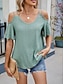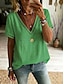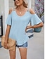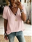 Damen T Shirt T-Shirt Loch Einfach Mode Stilvoll Klassisch Kurzarm V Ausschnitt Normale Oberteile Täglich Ausgehen Wochenende Blau Rosa Grün Aprikose Sommer Frühling
