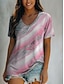 Damen T Shirt Druck Grafik Marmor Bohemien Vintage Stilvoll Kurzarm V Ausschnitt Normale Oberteile Täglich Rosa Sommer Frühling