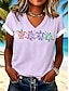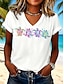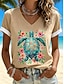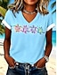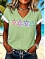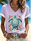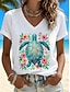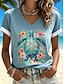 Damen T Shirt Druck Grafik Tiermotiv Buchstabe Vintage Stilvoll Klassisch Kurzarm V Ausschnitt Normale Oberteile Täglich Blau Schwarz Weiß Grün Grau Sommer Frühling