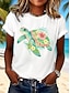 Damen T Shirt Druck Grafik Meeresschildkröte Mode Stilvoll Klassisch Kurzarm Rundhalsausschnitt Normale Oberteile Lässig Täglich Wochenende Blau Weiß Purpur Khaki Grau Sommer Frühling