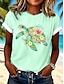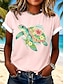 Damen T Shirt Druck Grafik Meeresschildkröte Mode Stilvoll Klassisch Kurzarm Rundhalsausschnitt Normale Oberteile Lässig Täglich Wochenende Blau Weiß Rosa Purpur Grün Sommer Frühling